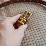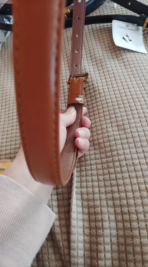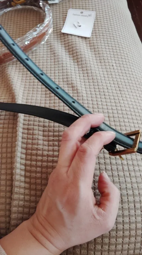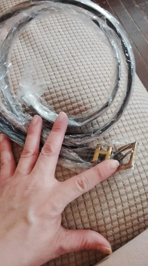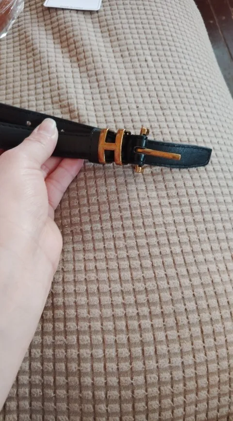 This has one of those push buckles, so instead of folding the belt buckle into each hole for the size where the h is, there’s a push pin behind it, and you would just push to the size hole that you need in order to fasten the belt. Obviously, that’s not what’s in the picture, which is where my concern lies. I might still wear it, but i wouldn’t waste the money.