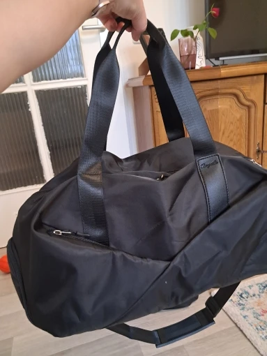 I recommend it. The bag is nicely sewn from a pleasant slippery material, which makes it easy to keep it clean. There is a separate pocket for shoes, a pocket for wet/dirty clothes, and a small pocket for coins. I’ve been using it for some time now and nothing has happened.