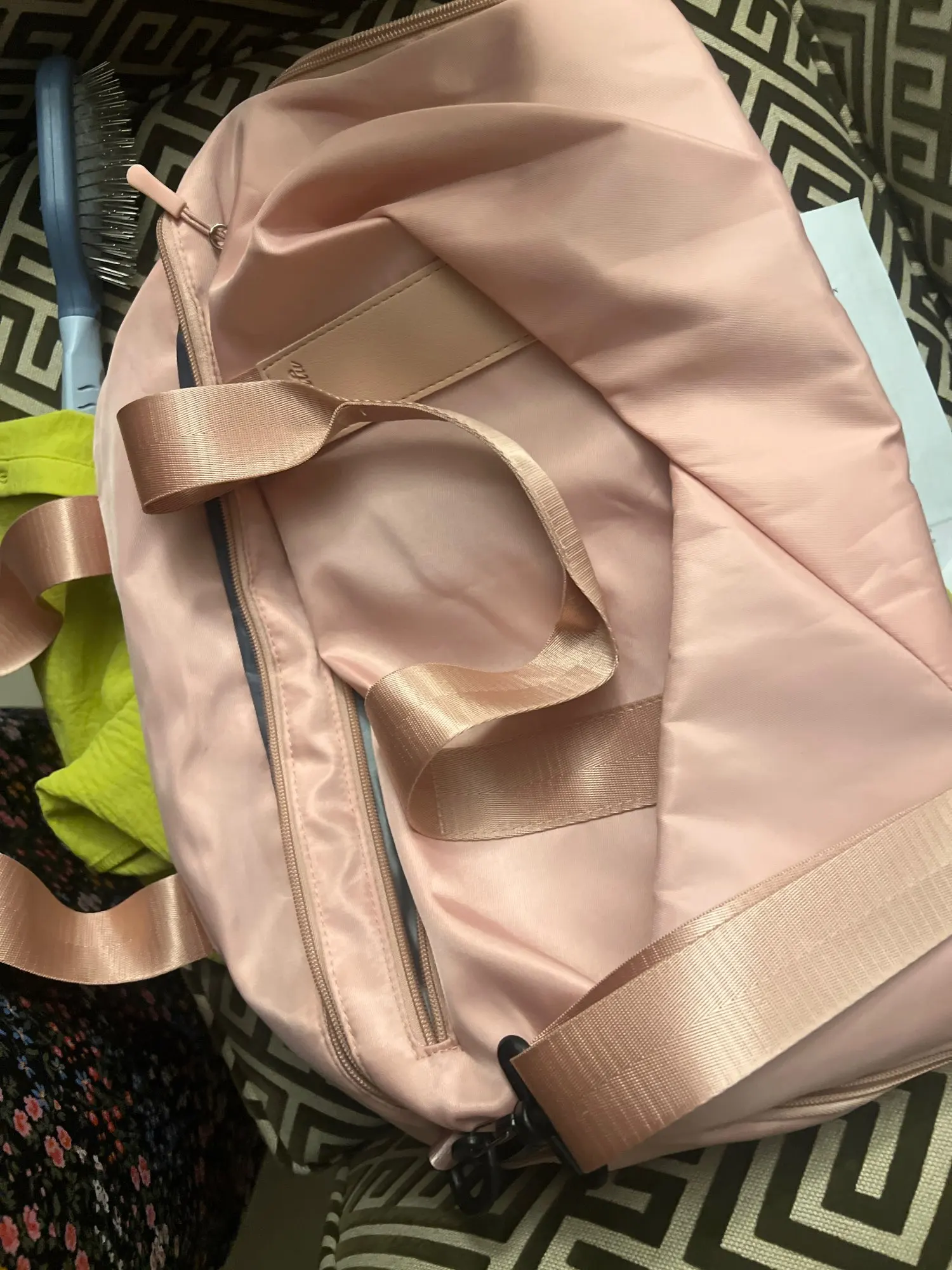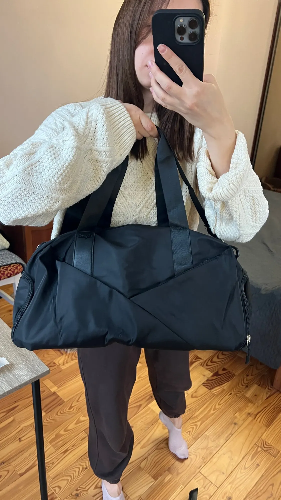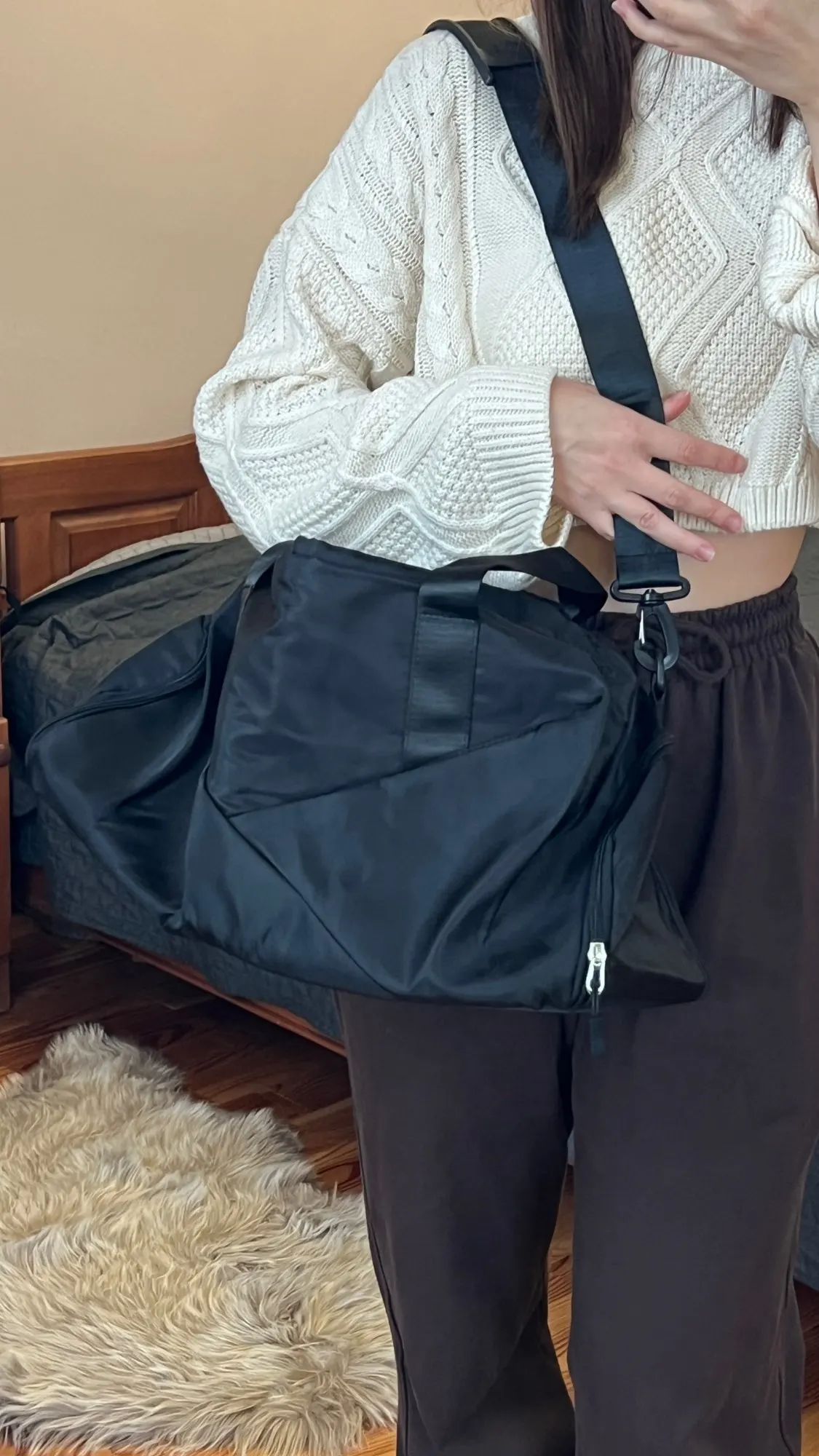 The bag is gorgeous! I had the same one but in purple (from another seller) and ordered another one for the hall for the winter, in a more universal color, but it’s very spacious and stylish + the shoe compartment is very convenient! The only downside is that it gets wet more easily if it rains, but overall for its price it’s really cool (others around me sell it for more) I recommend it!! It arrived quickly and was shipped quickly too.