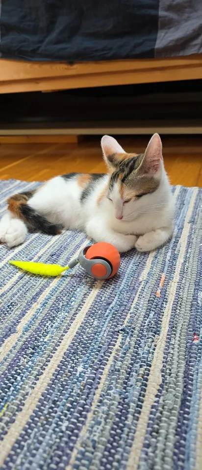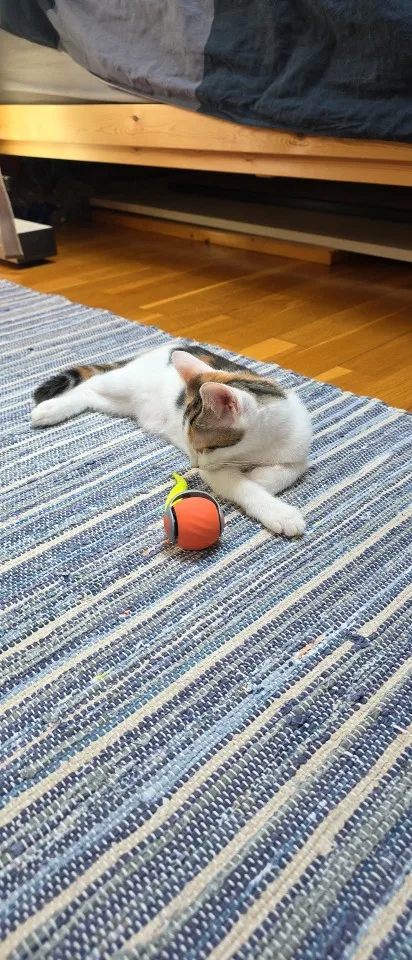 Excellent product for quality/price, my kitten goes crazy with it, it shakes a bit everywhere and makes noise but that’s normal, it’s very durable, it took a flight down the stairs but it still works perfectly. I attach photos of the exhausted kitten after chasing it for half an hour, the battery lasts sufficiently. Top.