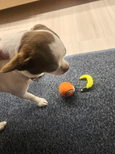I bought the toy for my Shitzu, a puppy who loves to play. Since she got this ball, she won’t leave it alone. A great toy, I recommend it to everyone interested in purchasing.