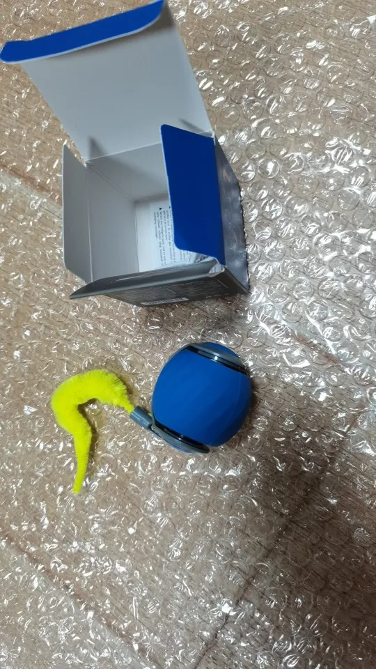 Box arrived crushed and the ball in pieces, feather gone. I was able to put it back together and it worked great. The dog absolutely loves it
