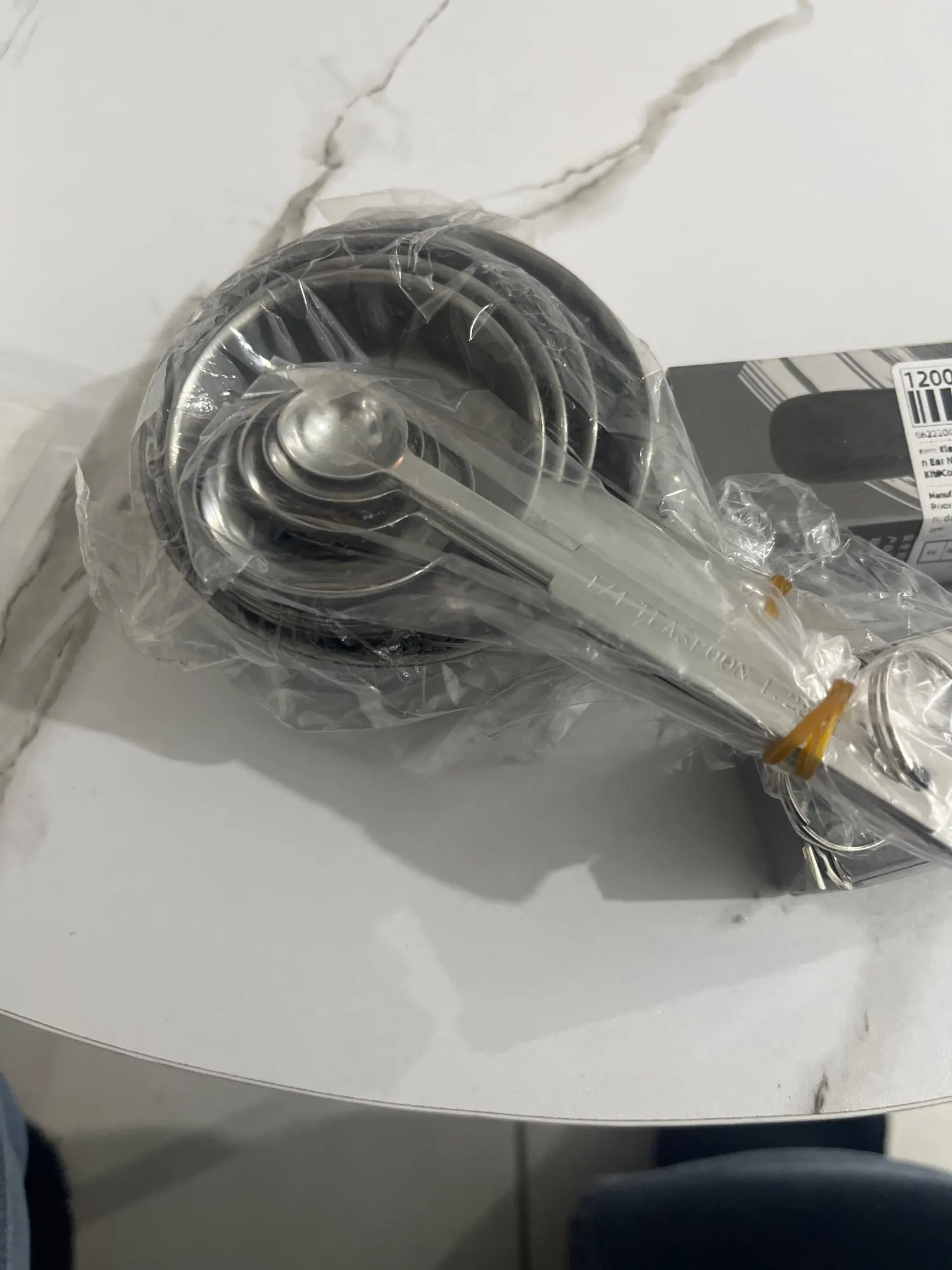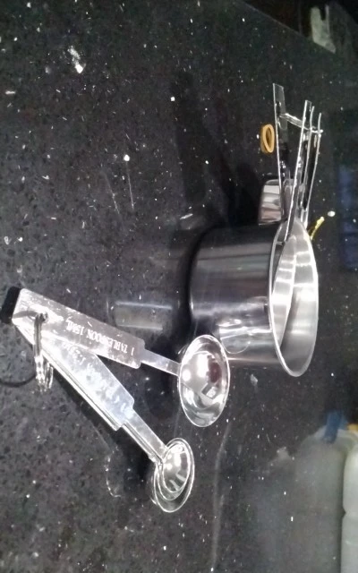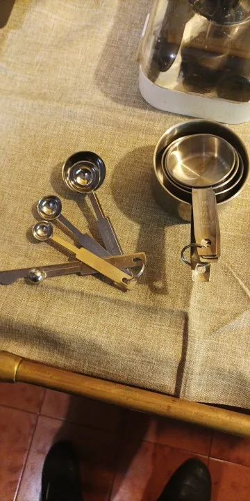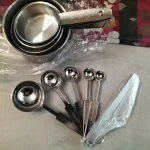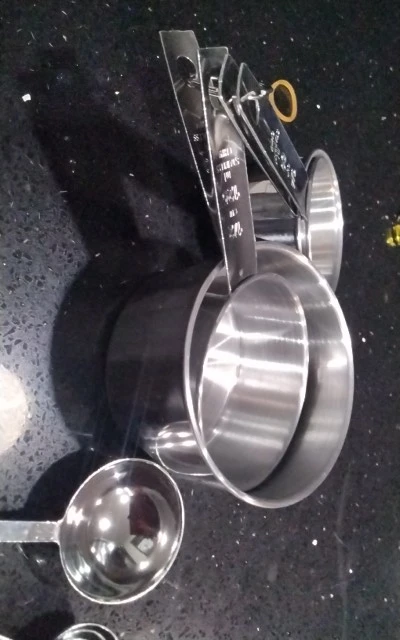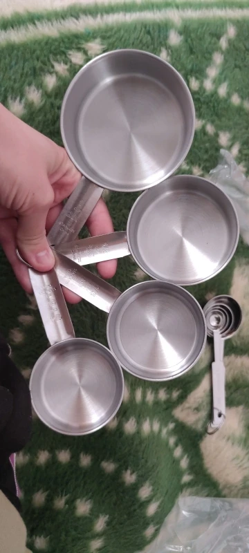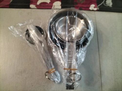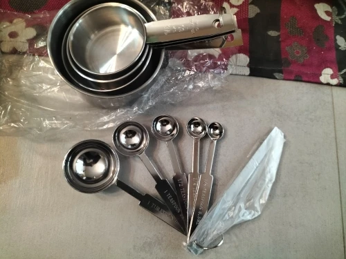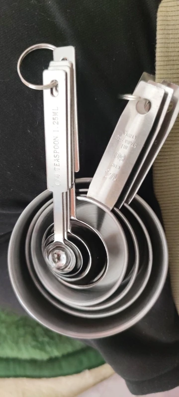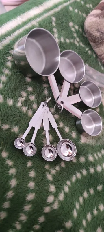 Nice stainless measuring cups, spoons seem to be chrome plated metal so we will see how they go