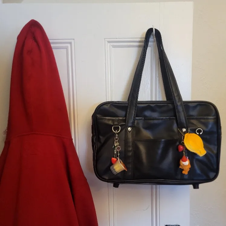 So cute and spacious ! ! It can fit my books, folders and personal items inside, it was delivered fast! 🤍