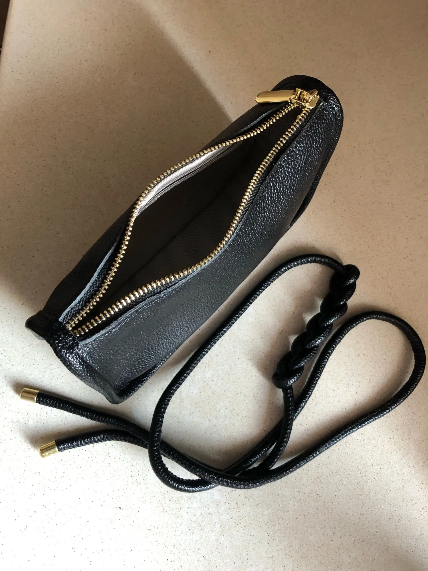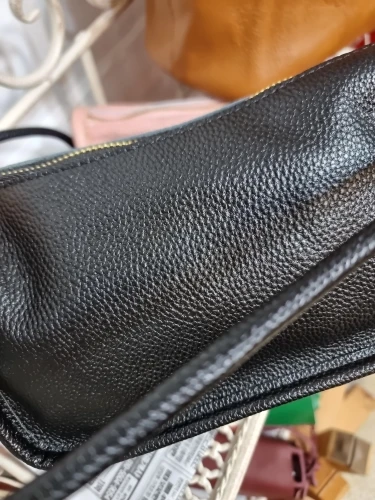 The handbag turned out to be larger than I expected, which pleasantly surprised me! High quality, smells like leather, soft to the touch, not faux leather. The strap is long, adjust as you wish. Inside there is a lining and a zippered pocket. I’m not sure if I like the color of the hardware; it’s yellowish, but overall it’s quite nice, especially for the price!!!