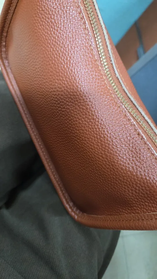 The bag is leather, but it smells like plastic, and the workmanship of the edges (which are made of eco-leather) does not match the rest of the bag. It is finished well and carefully, but I won’t buy it again. The edges near the zipper are not secured at all; they should be protected with lacquer.