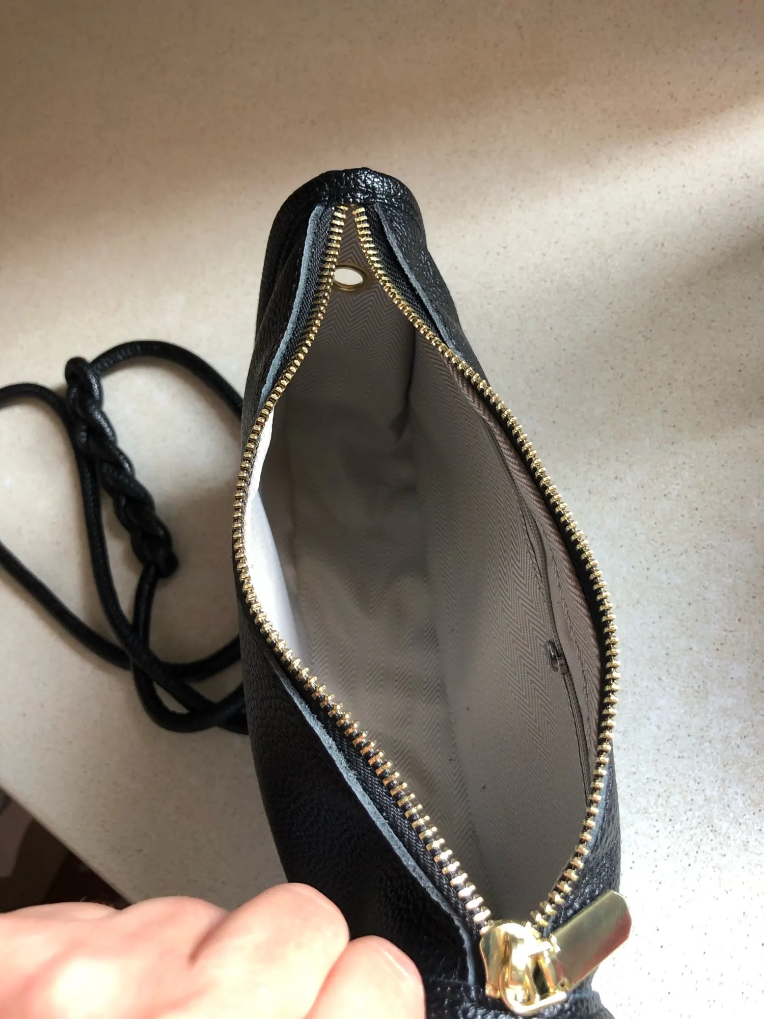 The purse is beautiful! The quality and workmanship are excellent! Well-packaged. There is a lining inside and a pocket with a zipper. The edges are well finished. A lovely little purse that fits everything necessary! I recommend it!