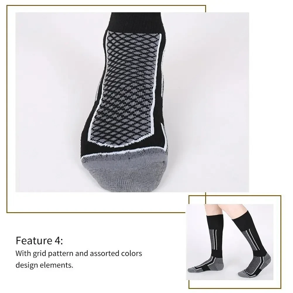Thickened thermal ski socks are designed to keep feet warm and comfortable during cold-weather activities. Made with a soft cotton blend and cushioned terry lining, ideal for skiing, hiking, and outdoor winter sports.