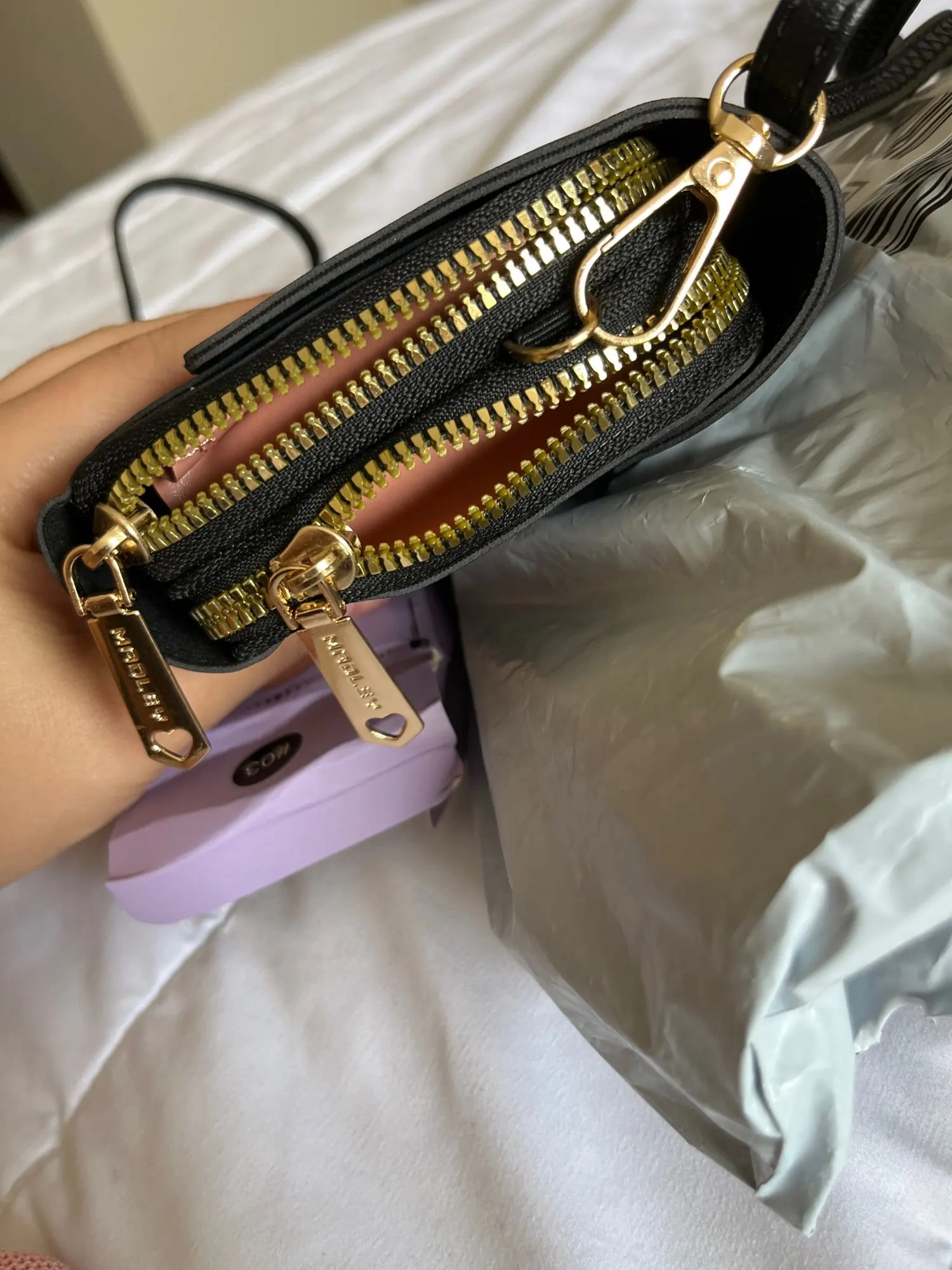 - Works as both a wallet + small handbag