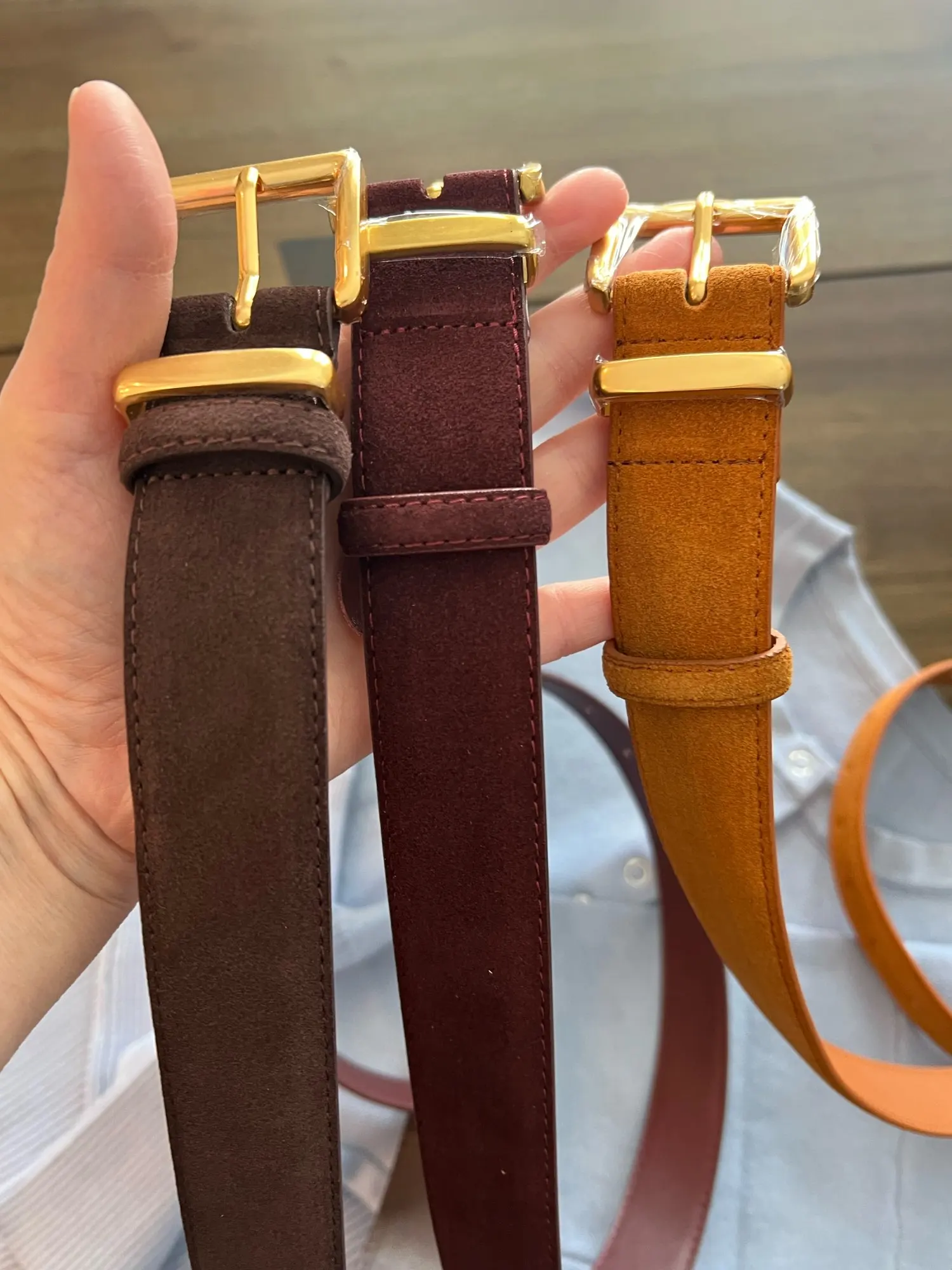 Add a timeless vintage touch to your outfit with this elegant suede leather belt. Designed with a sleek gold-tone buckle and a comfortable mid-width profile, it pairs effortlessly with dresses, jeans, and everyday looks.