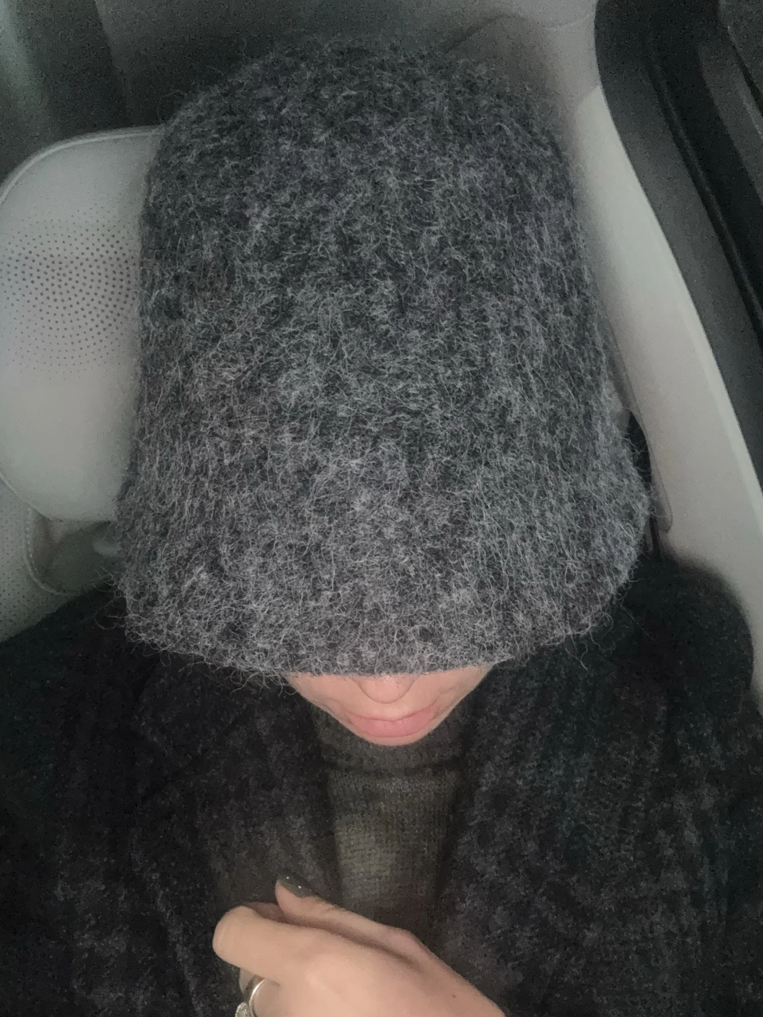 It fits even on a big person’s head, a bit loose for me, but there are strings that help adjust the size. Soft, but holds its shape due to its thickness.
