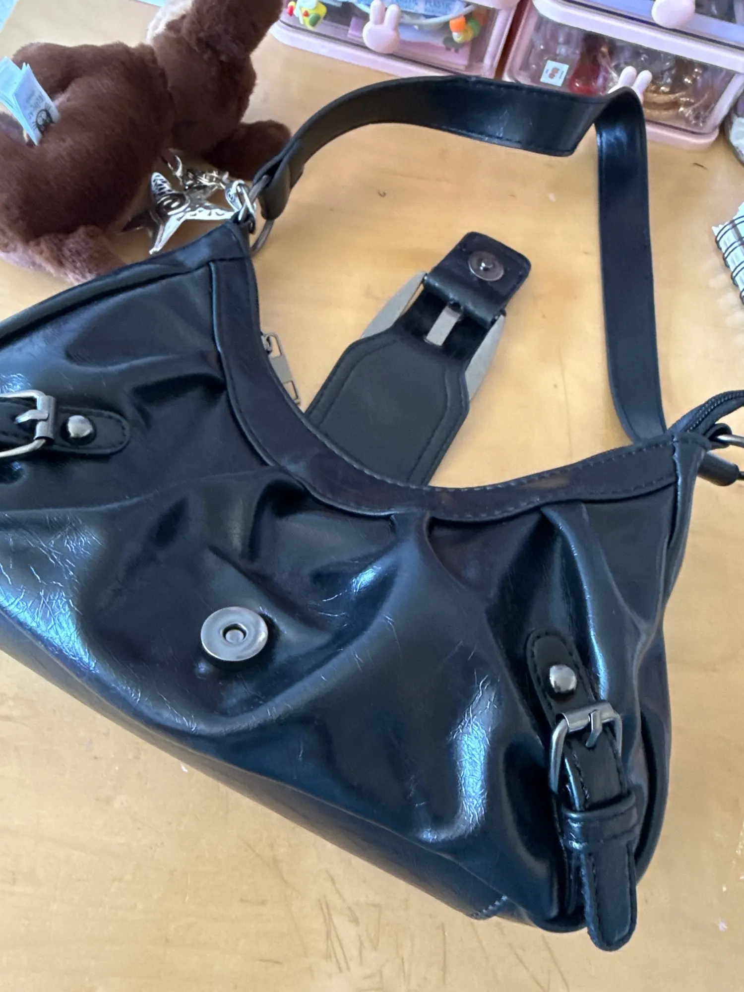 Literally the cutest bag ever, people said smaller than they expected but it was the perfect size. The buckle has a magnet so you don’t actually have to unbuckle it every time, so good for the price